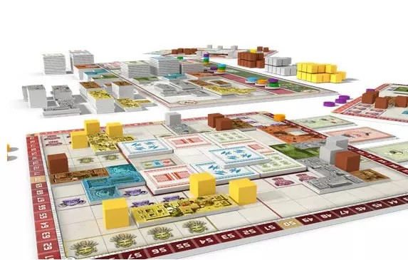 À son tour, le joueur ne peut construire que dans les 2 Quartiers les plus proches de la position actuelle de son Architecte. Ce dernier se déplaçant à chaque fin de tour autour du plan de la Ville, il faudra s'adapter et tenter d'anticiper au mieux ses prochains coups ! Les Bâtiments construits (de 4 tailles et formes différentes qu'il faudra réussir à placer judicieusement sur son plan, et dont la possibilité de construction est définie par la Puissance d'Action déclenchée) débloquent l'accès à diverses Ressources. Ces dernières seront utilisées pour la construction de Temples et de la Grande Pyramide.