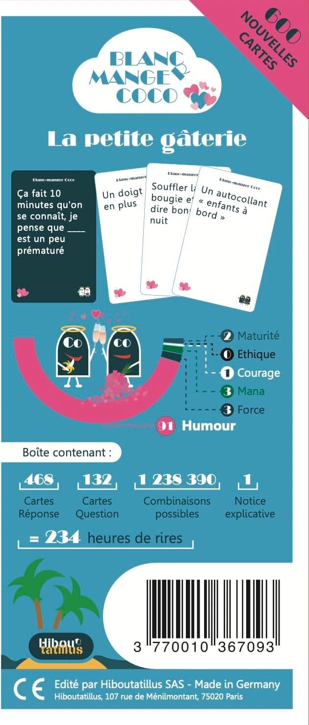 Dans La Petite Gâterie, retrouvez les mignonneries des premières rencontres, les premiers coups fourrés, les espoirs, les projets, les déceptions, les plaisirs du quotidien, les fantasmes, etc. Tout ou presque nous ramène à l’amour…Parce qu’on ne rit jamais assez, parce qu’on a le droit de rire de TOUT, voici Blanc Manger Coco, le jeu parfait pour animer vos apéros.