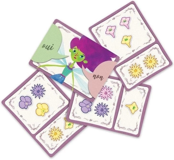 Dans Le Repas des Fées, les joueurs plongent dans un univers féérique et fleuri où chaque manche met l’un d’eux dans la peau d’une fée capricieuse. Cette dernière détermine en secret une règle alimentaire : par exemple, elle pourrait ne manger que des fleurs roses, ou uniquement celles en nombre pair. Pour semer des indices, elle classe des cartes fleurs du côté "OUI" ou "NON", selon qu’elles correspondent ou non à son critère.